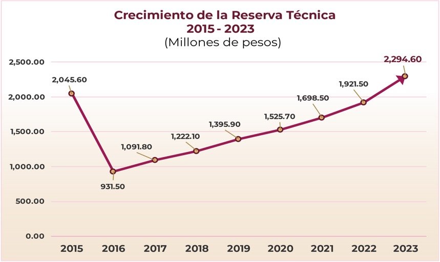 *Reserva técnica pasó de 931 a 2 mil 294 millones de pesos de 2016 a 2023