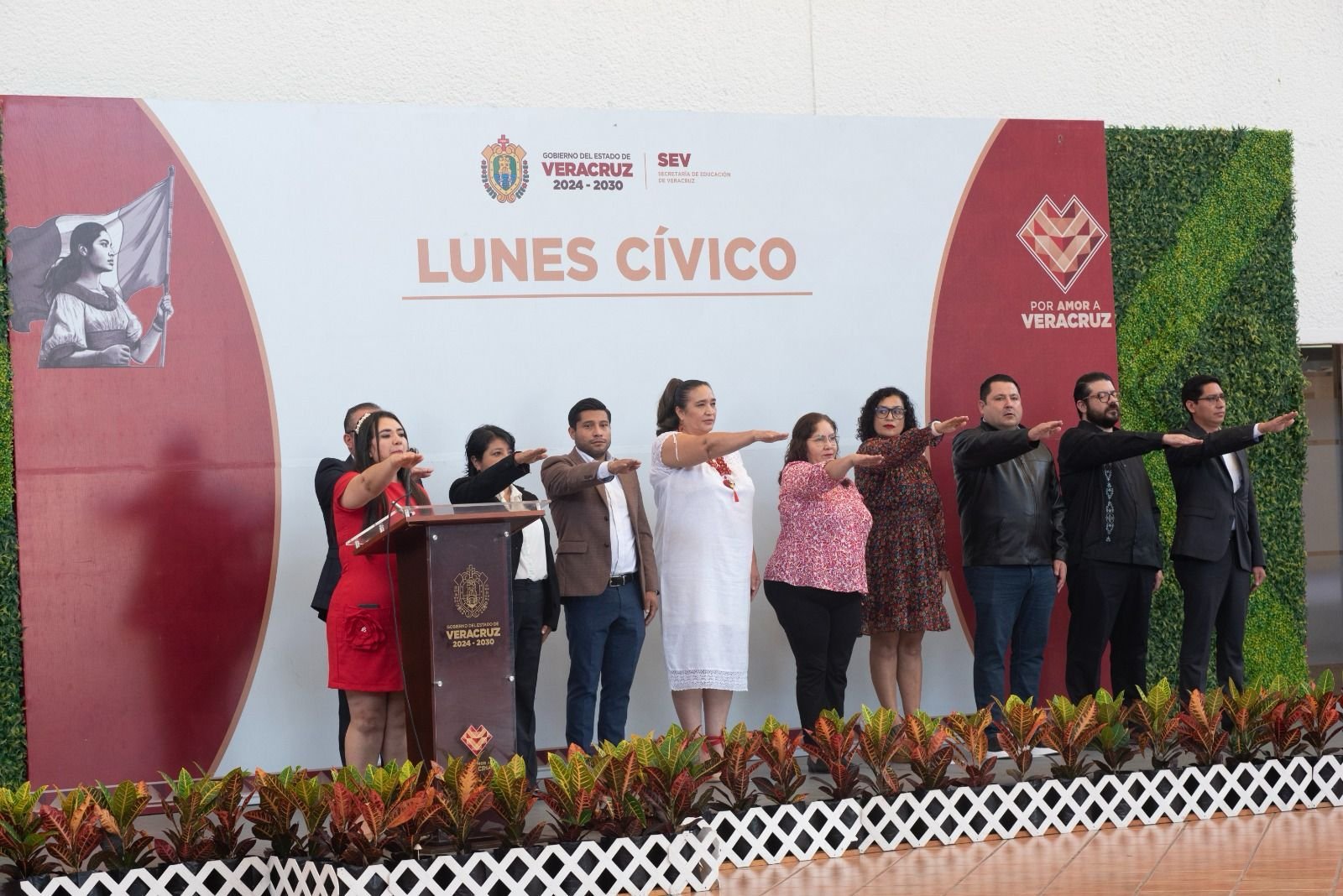 Durante la ceremonia de Lunes Cívico, presentó de manera oficial al subsecretario de Educación Media Superior y Superior, David Jiménez Rojas. Asimismo, felicitó a estudiantes de telesecundaria que participaron en la producción de videos que se difundirán a nivel nacional como parte de la NEM, así como a jóvenes destacados de distintos planteles del Colegio Nacional de Educación Profesional Técnica (CONALEP).