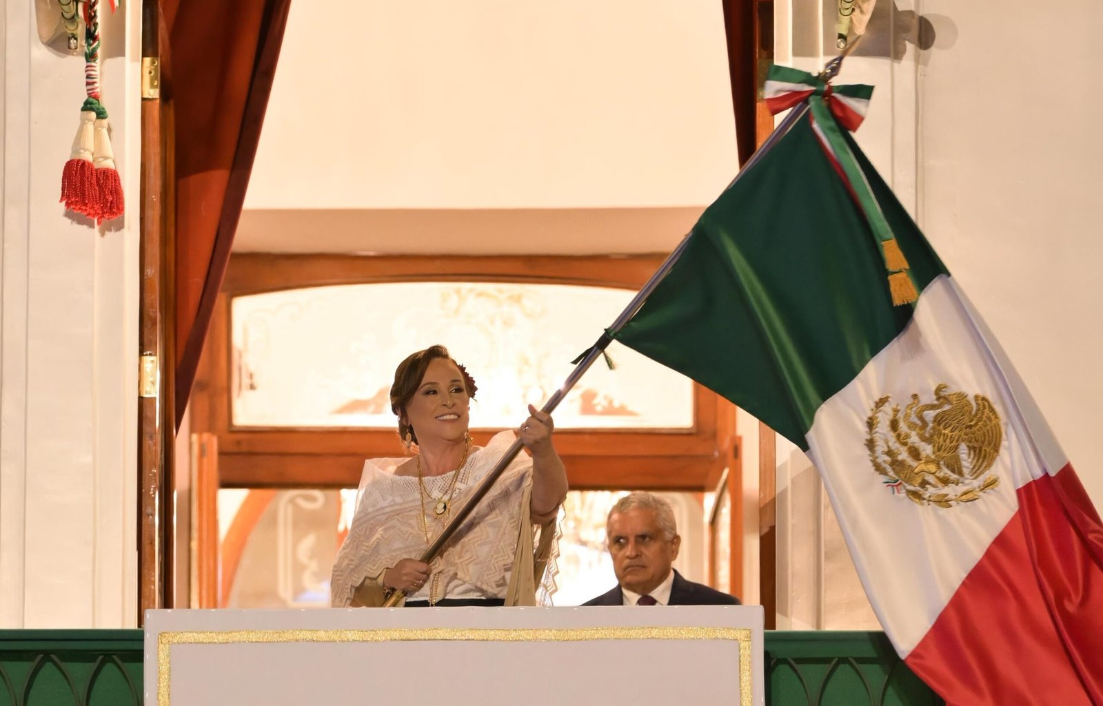 Ataviada con un elegante traje típico de jarocha, confeccionado en Tlacotalpan, la Gobernadora salió al balcón principal alrededor de las 23:09 horas. Con gesto solemne hizo ondear el Lábaro Patrio y, en medio del júbilo colectivo, lanzó 13 vibrantes arengas que fueron coreadas con fuerza por la multitud, en conmemoración del 215 aniversario del inicio de la gesta por la libertad y la justicia de México.