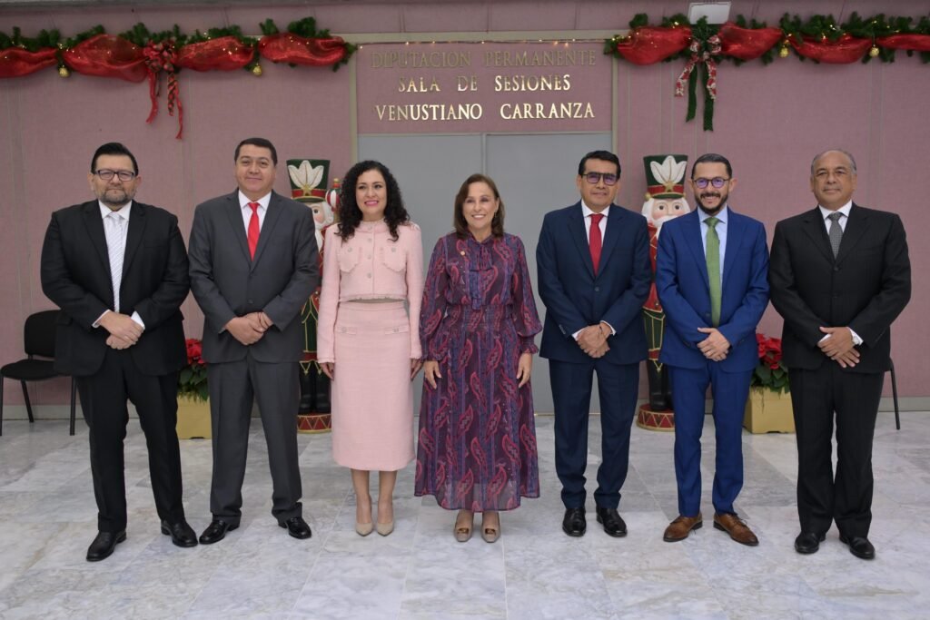 Ante las representantes del Poder Legislativo y Judicial, Naomi Edith Gómez Santos y Rosalba Hernández Hernández, resaltó la atención a mil 987 expresiones sociales, los convenios de coordinación en seguridad con Puebla, Oaxaca, Chiapas y Tabasco, así como la reducción de la deuda pública de 119 mil 388 a 69 mil 645 millones de pesos, equivalente al 42%.