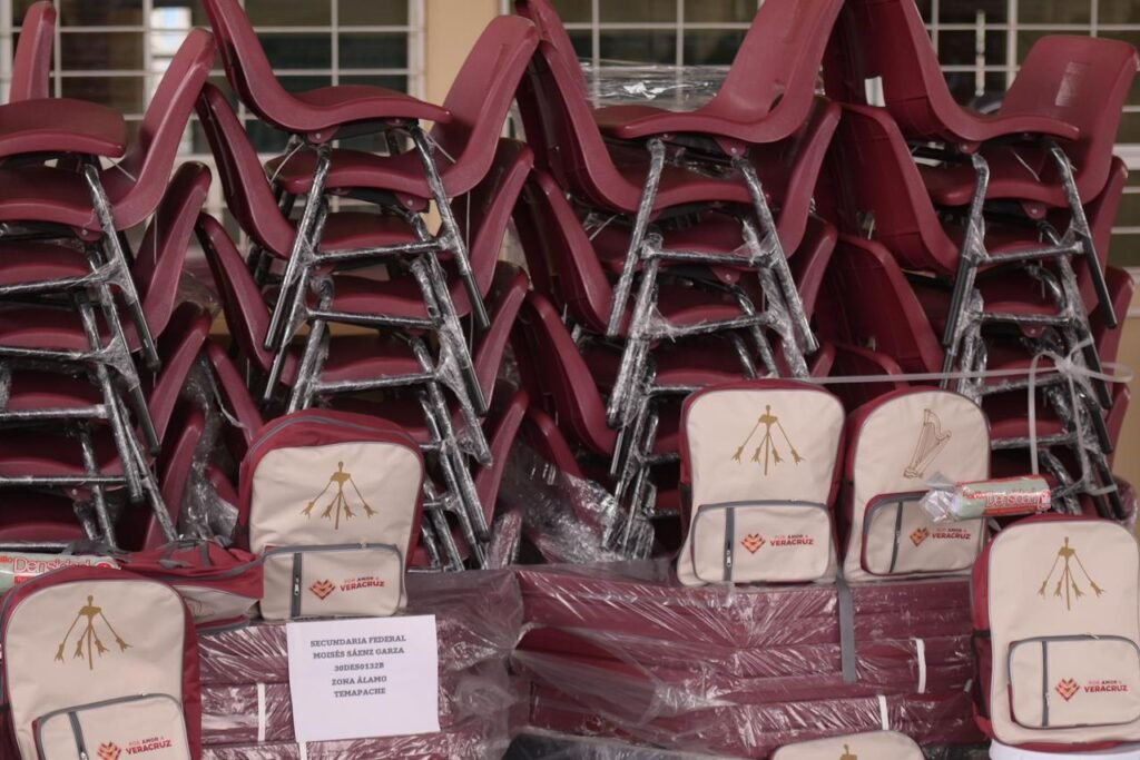 Durante la visita, la Mandataria conoció los procesos y calidad del material que se utiliza para la fabricación de mesas, butacas y mobiliario escolar, destacando que se trata de una empresa cien por ciento veracruzana, lo que fortalece la economía local al tiempo que contribuye a mejorar las condiciones de aprendizaje de niñas, niños y jóvenes.