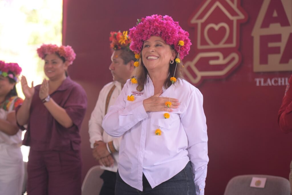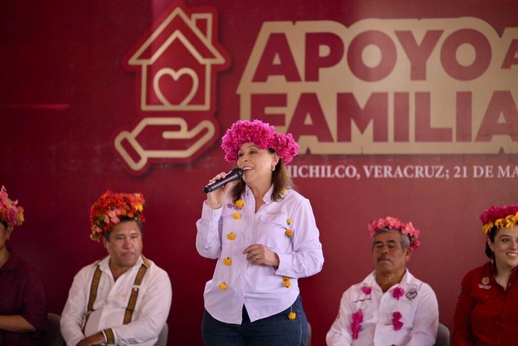 Tlachichilco, Ver., sábado 21 de marzo de 2026.- La gobernadora Rocío Nahle García encabezó la entrega de apoyos del programa Apoyo a la Familia en la comunidad El Naranjal, municipio de Tlachichilco, donde anunció la construcción de un puente para cruzar el río Vinazco, la implementación de caminos artesanales y sacacosechas.