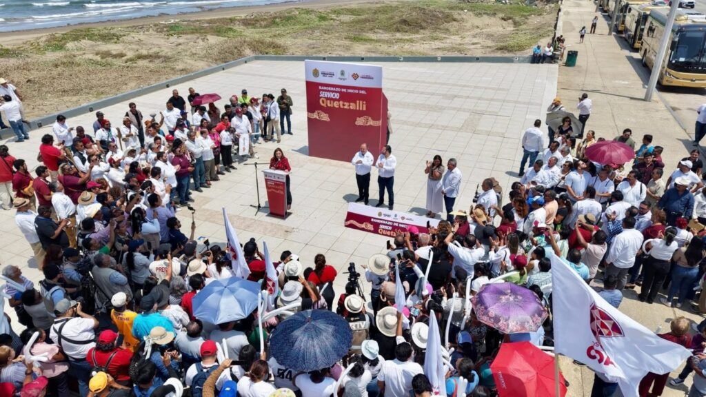 Coatzacoalcos, Ver., jueves 26 de marzo de 2026.- La gobernadora Rocío Nahle García dio el banderazo de inicio a las primeras 60 unidades del transporte público Quetzalli, que desde hoy operan en Coatzacoalcos para optimizar la movilidad, elevar la calidad del servicio y dignificar el traslado de la población.